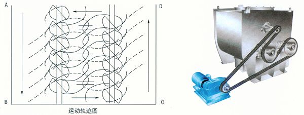 本机由电机通过减速机、链轮带动二根平行的主轴以一定的转速作等速反向转动。 以一定角度安装在主轴上的桨叶将物料抛洒到整个容器空间,使物料处于瞬间失重状态,广泛交错对流、扩散,从而达到均匀混合。对比重和粒径及形状差异悬殊的物料混合时不会产生偏析,是一种迅速高效的粉体混合设备。本机可按用户要求,增加夹套及分散棒,也可提供气动出料及喷液装置。接触物料部分材质为碳钢或不锈钢。