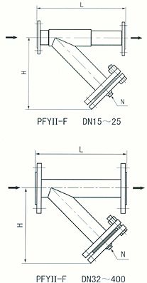 (6)Y型带夹套焊制法兰连接式(PFYJII-F型) (DN20~200,PN≤5.OMPa) PFYJII—F型