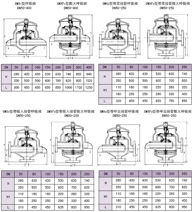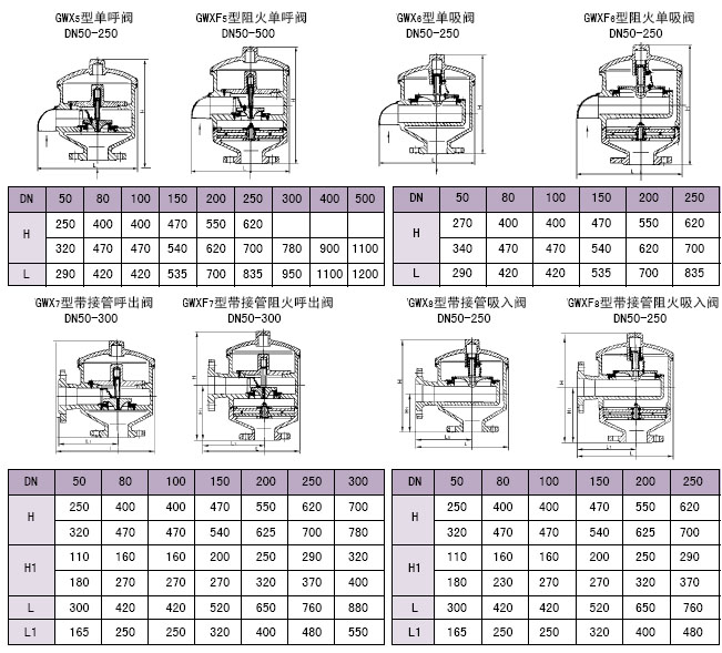 1、呼吸阀代号以VGWX表示,VGWXF为阻火呼吸阀代号。
