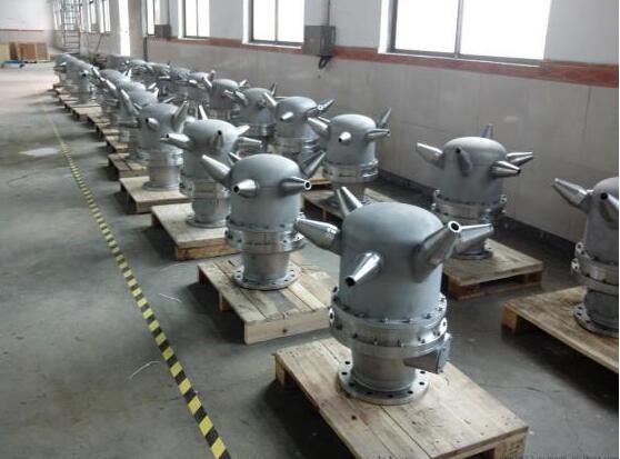 油品调和器是用于石化液体调和的专用设备,油品调合器是根据储罐的大小、液体的粘度、安装使用的位置,泵的扬程等诸多因素来确定其侧向喷嘴的倾角度及喷嘴孔径的大小。进料时液体从四周均布的喷嘴喷出,可使进罐的物料与罐内原有的物料充分混合,无需单独操作。从而达到热传递均匀化的目的,可缩短调合时间、具有节能降耗、降低蒸发损失等优点。它具有结构紧凑,操作方便安全可靠,效率高及避免油品氧化等优点。油品调合器系列分单喷嘴和多喷嘴两种,单喷嘴是一个流线型锥形体。多喷嘴分为6个和6个喷嘴组合,多喷嘴具有缩短循环时间、节能降耗、降低蒸发损失等优点。