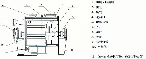 说明:1、标准机型无夹套,无喷液装置,如需要,订货时须说明