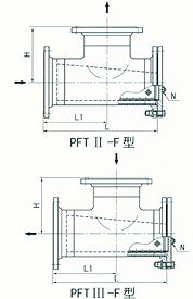 (2)T型法兰连接直通式过滤器(PFT-F型)(DN50~400,PN≤5.OMPa)