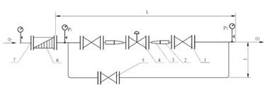 | 附图1 设独立阀门室的氧气压力调节阀组示意图 |