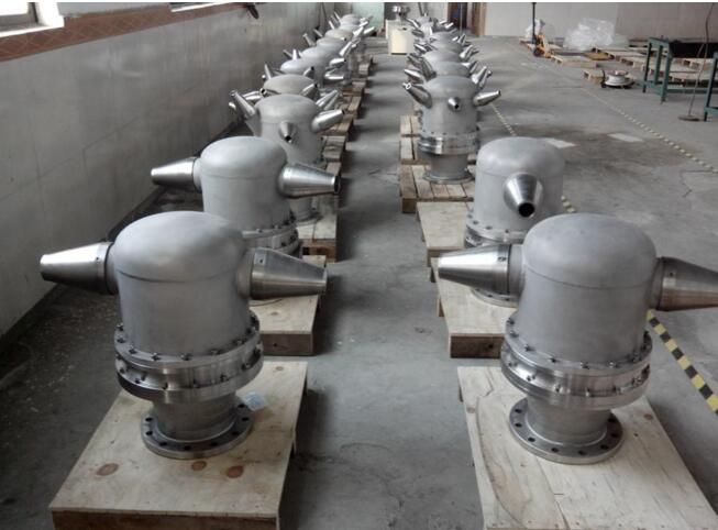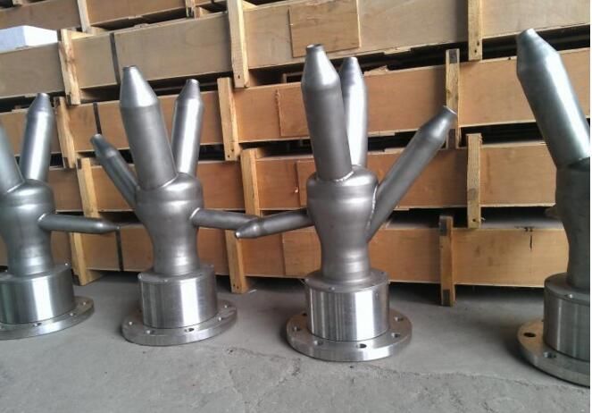 油品调和器是用于石化液体调和的专用设备,油品调合器是根据储罐的大小、液体的粘度、安装使用的位置,泵的扬程等诸多因素来确定其侧向喷嘴的倾角度及喷嘴孔径的大小。进料时液体从四周均布的喷嘴喷出,可使进罐的物料与罐内原有的物料充分混合,无需单独操作。从而达到热传递均匀化的目的,可缩短调合时间、具有节能降耗、降低蒸发损失等优点。它具有结构紧凑,操作方便安全可靠,效率高及避免油品氧化等优点。油品调合器系列分单喷嘴和多喷嘴两种,单喷嘴是一个流线型锥形体。多喷嘴分为6个和6个喷嘴组合,多喷嘴具有缩短循环时间、节能降耗、降低蒸发损失等优点。